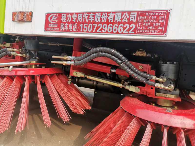 6、噴水降塵選用優(yōu)質(zhì)高效的離心水泵:流量大,壓力高,能夠有效的降低清掃揚(yáng)塵,及減少吸口堵塞,該車(chē)在清掃刷盤(pán)裝有不銹鋼噴水架及銅質(zhì)降塵噴頭。