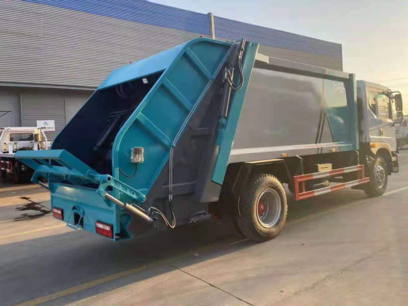 有效壓縮容積12立方,壓縮倍率3-4倍,壓縮后生活垃圾密度從0.36變為0.9以上,帶污水收集箱,新款平板式箱體更美觀,尾部帶密封橡膠墊,可防止污水滴漏造成二次污染。可帶全密封翻轉斗和掛桶裝置,PLC一鍵操控系統,駕駛室和尾部雙操控機構。
