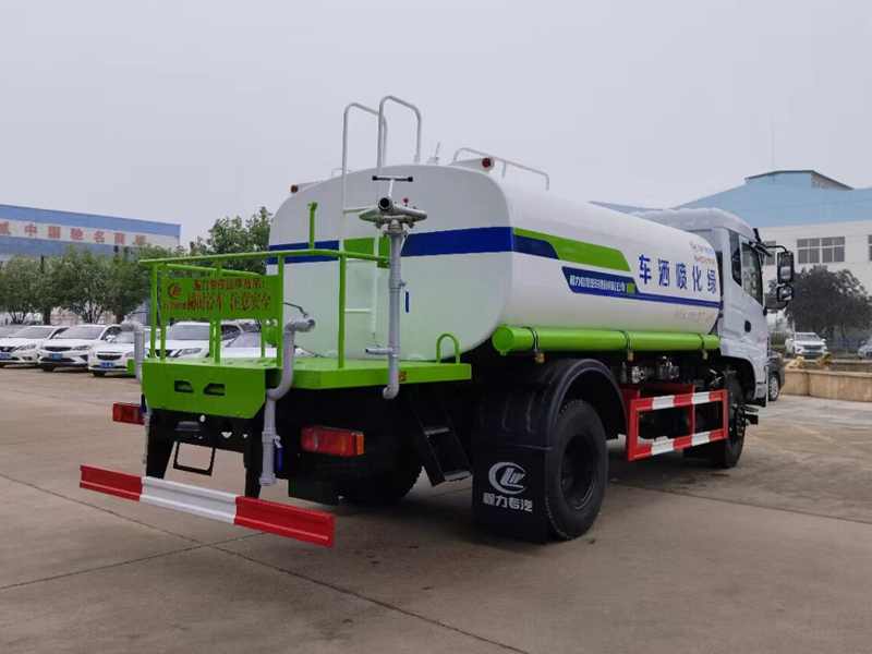 上裝配置:新款3.0版本涂裝,罐體實際容積12方,材質:罐體采用Q235,隔板厚度3mm,罐體碳鋼厚度4mm,封頭厚度5mm,大口徑直通球閥,灑水功能:前沖、后灑、測噴、高位花灑。可選裝鋁合金三通,加粗主管道(76)