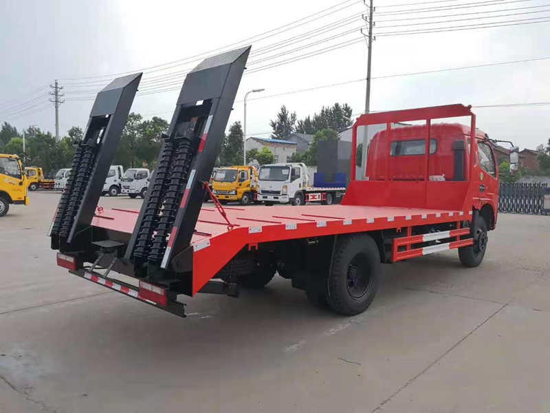 隨著國家對道路運輸的超載超限現象的嚴管。很多地方對平板拖車超載現象說“不”。這不,來自湖南張家界的莫姓小伙來我公司訂車了。下面為大家介紹一款:東風福瑞卡平板運輸車,核載8T,拉80挖機不超載的平板拖車