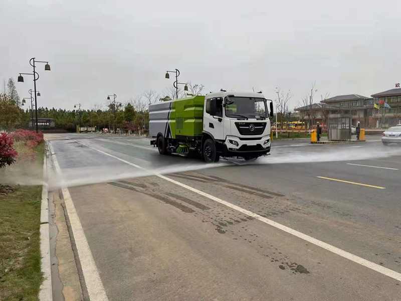 東風天錦洗掃車,采用囯六二類汽車底盤,軸距5000mm配備康明斯210馬力發(fā)動機,10.00R20鋼絲胎,豪華帶臥駕駛室,駕駛室?guī)胺较蛑Γ陀秃模涎b康明斯170馬力副發(fā)動機,廈門南超高品質(zhì)自動離合器。海德瑞沃電磁閥組,德國品孚高壓水泵,耐磨液壓油缸,西門子電控開關(guān),左右,后噴霧壓塵系統(tǒng),前置兩掃盤,中置吸盤,隨車配備高壓沖冼功能,垃圾箱自潔功能,垃圾箱防溢滿報警裝置。